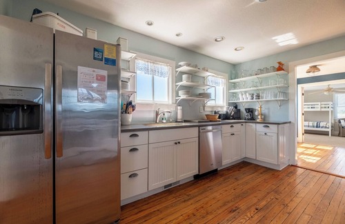 'Sawyers Lodge' was originally built in the 1920's and was known as the G.C. Sawyer Hunting and Fishing Lodge. This beautiful home is listed in Preservation NC, which promotes and protects the buildings and landscapes of our state's diverse heritage! If you are a history buff, this is the place for you! It has been lovingly restored into a 5-bedroom, 4 bath retreat that could be featured in Country Living! Original details like hardwood floors and beadboard walls are still intact, yet blend seamlessly with the updated kitchen and bathroom areas. In addition, there are 2 family living areas as well as a dining room, and a family friendly screened porch! To top it off, outdoor spaces are plentiful with 5 decks, including one off of the master suite! Your private saltwater swimming pool awaits. . . or perhaps you would prefer the hot tub to soak the day away. Oh, and don't worry about having to come across the bridge to get your house keys, you will be provided with a keyless entry code prior to your 4pm arrival.