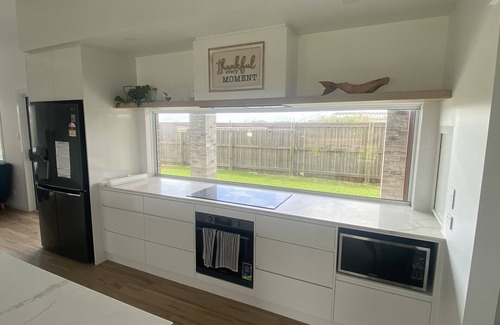 The kitchen is fully equipped including a microwave, multi-function oven (with air fry) and full dishwasher. The appliances provided include an electric frypan, air fryer, toasted sandwich maker, L'Or coffee pod machine, milk frother, toaster and kettle. The 637 litre fridge/freezer has plumbed in water and automatic ice-dispenser.