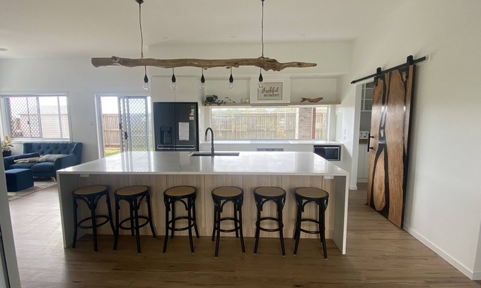 Kaarakin Beach House is a modern, newly built home and provides everything a group or family could want for a relaxing, peaceful getaway. Enjoy the ocean views on the back deck or escape the elements and dine in the downstairs alfresco area. When you are up for an adventure there is plenty on offer. Surf or swim at Rules Beach, fish in Baffle Creek or off the beach, visit Wreck Rock National Park or go for a drive along the beach which is 4WD accessible. Turtles nest along Rules Beach Nov - Mar.