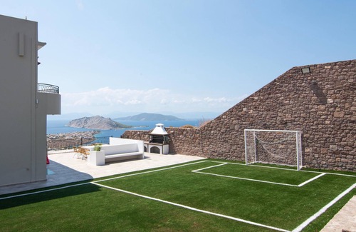 Immerse yourself in the tranquility of your own private pool, complete with comfortable sunbeds for relaxation. The outdoor space also features a mini football field, adding an element of fun and recreation to your stay.
