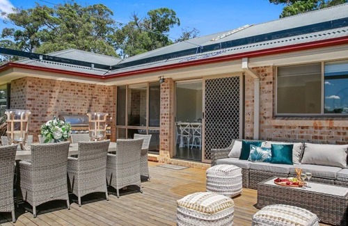 The house itself is large and spacious sleeping 10-12 guests. With 5 comfortable bedrooms, 3 bathrooms, 3 stylishly decorated living areas, a large games room with table tennis, 2 large TVs and a generous sized entertaining deck overlooking a brand new pool, there is space and activities for everyone. The pool depth is between 1.2m and 1.9m, and it is 11m long and 4m wide. The location is perfect with Bundanoon Hotel only 2.3km away.