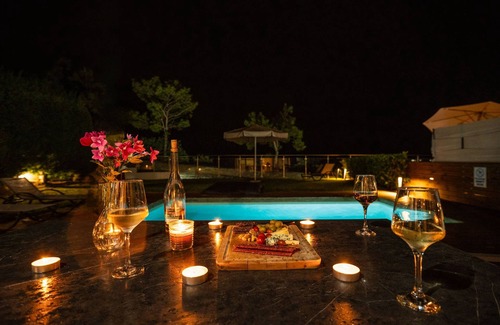 Best-rates for the Nea Moudania villa starts from $224 per night with includes Air Conditioner, Internet, Laundry, Parking, TV, Security/Safety, Child Friendly, Pool, Balcony/Terrace, Bedding/Linens, Wellness Facilities, Entertainment, Kitchen, Private Pool, Fireplace/Heating with all other amenities. Perfect for Weddings is committed to ensuring every guest experiences a comfortable and extraordinary stay, whether planning a romantic getaway, a honeymoon, a pet-friendly stay, or celebrating with the entire wedding party.
