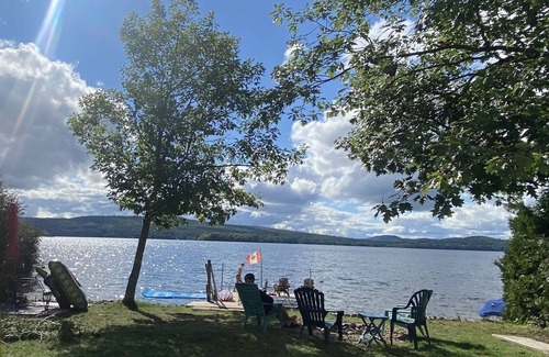 Cozy yet spacious three bedroom two bath cottage located on Kamaniskeg Lake, Barry's Bay Ontario. The most beautiful sunsets, as we face west- clean and shallow entry no weeds where you can enjoy two stand up paddle boards, one kayak and a massive lily pad for hours of enjoyment! Lots of outdoor seating areas, a fire pit area, basketball net ,and indoors there are tons of books, games and smart TV, which has live TV and unlimited TV Shows and Movies. Wood burning fire place for chilly nights and baseboard heaters in all rooms , Wifi is great, so you can catch up on emails. Hedges alongside both sides of property, providing privacy from neighbors, enough parking for three vehicles, and twinkle lights in the trees for those bon fire nights. Inside you will find a spacious kitchen with everything you might need, full fridge, stove, microwave, full size coffee maker and also a Keurig machine (we supply one tray of pods!) Watercooler, utensils, cups, jugs you name we have it! Bathroom on main floor has a stand up shower and the two bedrooms on the main floor; one is has a queen bed facing the lake and the other has two singles- massive living and dining area all over looking the lake. Upstairs you will find a loft like queen size bedroom and full bathroom ensuit- bedroom has a window A/C unit - back to main level there is a pull out couch in the dining area. Big enough for two families, up to eight people (max six adults)- bedding is included please bring your own towels.Our cottage is located five minutes to Barry's Bay, which is a fabulous town with all amenities-Grocery stores, restaurants, lake view restaurants, shops, LCBO, beer, and so much history. We are also a 40 min drive to beautiful Algonquin Park and 15 min to some adventurous rapids! 18 hole Golf course within 30 minutes .Come and relax, rejuvenate, you deserve it!
