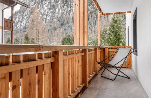From the balcony, you enjoy a splendid panoramic view of the surrounding mountains, ideal for starting your day with breakfast outdoors. Amenities include fast Wi-Fi, Smart TVs both in the living room and bedroom, free outdoor parking, as well as a private video-monitored box for bikes and ski equipment, complete with a boot warmer wall.