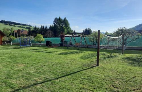 Providing garden views, KANADYJKA domki drewniane in Niedzica provides accommodations, a terrace, and barbecue facilities. There's a private entrance at the chalet for the convenience of those who stay. There's a children's playground and guests can access free Wifi and free private parking. The chalet provides guests with a balcony, mountain views, a seating area, a flat-screen TV, a fully equipped kitchen with a fridge and a stovetop, and a private bathroom with shower and a hair dryer. Kitchenware and kettle are also featured. At the chalet complex, all units include bed linen and towels. Guests at KANADYJKA domki drewniane can enjoy skiing and cycling nearby, or make the most of the garden. Niedzica Castle is 1.1 miles from the accommodation, while Treetop Walk is 13 miles away.
