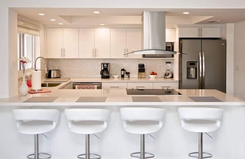 Full size kitchens fully supplied with what you need to cook and entertain including toaster, blender, and coffee maker.