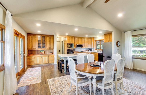 A rejuvenating and eventful retreat in Manhattan awaits at this 3-bedroom, 4-bath vacation rental! Situated in a peaceful neighborhood with stunning hilltop views, this property is a gateway to a world of outdoor fun. Tee off at nearby golf courses, explore the K-State Insect Zoo, take a scenic drive to the OZ Museum, and end your nights with stories around the fire. There's no place like Kansas — come and discover it for yourself!