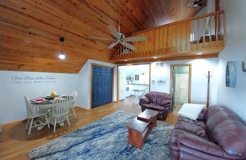 Welcome to Capernaum Cabin! Two acres of fun in the sun with a private boat dock on Anthony Lake, and the only vacation rental on Anthony Lake with 2 bathrooms! Savor the sunrise with a cup of coffee on the deck, kayak around the lake, lounge on the dock, play a round of golf or disc golf, then gather round the firepit to catch the gorgeous colors of a Kansas sunset! Summer or winter, it's the perfect place for friends and family to enjoy a relaxing getaway from the city, a hunting trip, a small church group retreat, or a cozy romantic weekend.