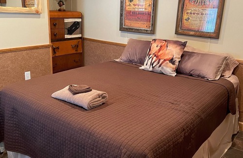 If you are looking for a quiet, comfortable place to sleep, look no farther! This cabin is located in the country where the crickets sing and no one bothers you! It is fully furnished and provides a comfortable, rustic feel! Breakfast provided each morning from May-October! Additional meals and horseback riding available for an additional cost with a minimum 24 hour advanced reservation (offered in May-October only). Enjoy the scenery and hike around with the horses and nearby hills or enjoy a nice cold drink in the saloon. Either way, you are sure to find a nice place to relax and literally get away!