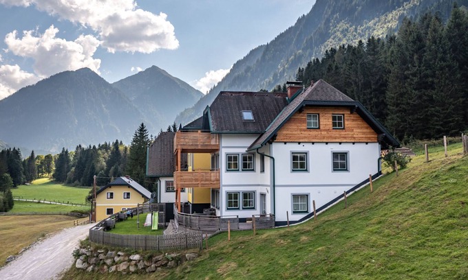 Cosy semi-detached house "Bartl". 2 apartments in the residence. In the district of Hinterwald, in the resort 11 km from the centre of Stein an der Enns, in a quiet, sunny position, 10 km from the lake. For shared use: terrace, barbecue. Private: small garden (fenced). In the house: lounge with TV, WiFi, sauna (all included), infrared sauna, spa area for shared use, storage room for bicycles, storage room for skis. Parking at the house. Grocery 11 km, restaurant 3 km, bakery 11 km, café 11 km, bus stop "Stein an der Enns" 11 km, railway station "Stein an der Enns" 11 km. Nearby attractions: Zipline Stoderzinken Gröbming 18 km. Well-known ski regions can easily be reached: Ski Galsterberg 20 km, Hauser Kaibling 22 km, Planai Schladming 30 km. Well-known lakes can easily be reached: Schwarzensee 8 km. Hiking paths: Schwarzensee-Alm 8 km. Owner lives in separate semi-detached house. Note: The beautiful new wellness area in the house AT8961.613.1, which is about 50 m away, can be shared. Wellness area opening times: Daily from 8:00 a.m. to 7:30 p.m.