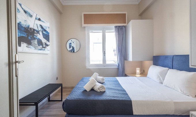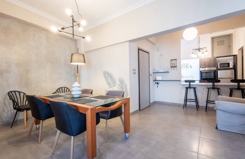 Step into relaxation at this newly renovated seaside retreat, just 1 minute from the beach! This stylish 2-bedroom apartment offers the perfect blend of comfort and convenience, featuring modern interiors, cozy furnishings, and a bright, airy atmosphere. Whether you're soaking up the sun, exploring the local area, or unwinding after a day by the sea, this is the perfect escape for families, friends, or couples.Book now and experience the ultimate beachside getaway! Of course the beds are already made-up, with fresh ironed sheets from top quality brand. Furthermore there are clean towels for every single of you.Entire property has free Wi-Fi!Acropoli s the closest Metro station and the bus station is 100 meters away.Smoking is only allowed on the balconyCommon quiet hours 11:00 p.m. – 07:00 a.m 3:00 p.m. – 5:00 p.m.For late check in after 00:00 there is a small feeTransfer service and private tours are available upon requestHow can i help you to get the most out of your stay?
