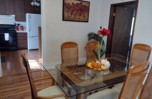 Your pets are welcome. The back yard is fenced, and there is a dog park one block away.