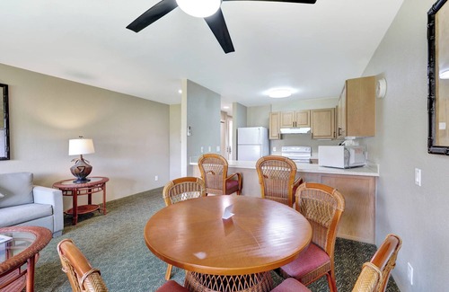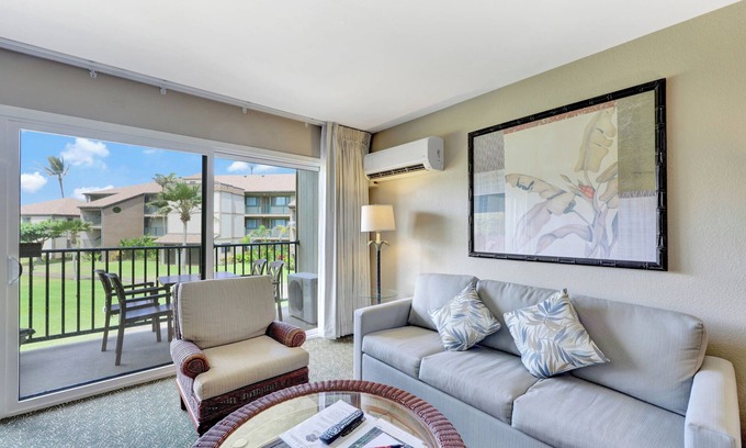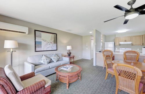 Living Space:The open concept living area is designed with relaxation in mind. Unwind on the plush sofa, watch your favorite shows on the flat-screen TV, or step out onto the private lanai to soak in the beautiful resort gardens. The condo also features air conditioning (split AC system in living room), and high-speed Wi-Fi. The condo has one bathroom. The unit is not designed for accessibility, and it features a traditional step-in tub.