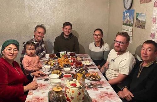 Offering mountain views, Kausar house in Karabulak features accommodations, a garden, and a shared lounge. This guest house offers free private parking, a shared kitchen, and free Wifi. The accommodation provides full-day security and room service for guests. Each unit features a terrace, a fully equipped kitchen with a microwave, a dining area, and a TV, while the shared bathroom includes a shower and slippers. There's also a fridge, kitchenware, and a kettle. The rooms are equipped with heating facilities. A selection of options including warm dishes, pancakes, and fruit are available for the halal breakfast. Guests at the guest house will be able to enjoy activities in and around Karabulak, like hiking. Almaty International Airport is 152 miles from the property.