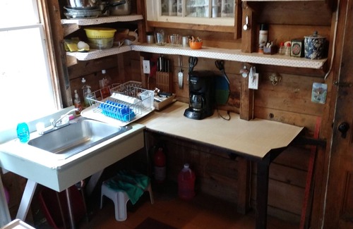 no washer/dryer, no dishwasher. There's no central heat but there is a fireplace in the living room. There are three bedrooms upstairs and porch rockers to sit and listen to the loons. Go back to a quieter more peaceful time in history. There are antique rockers, a Victorian fainting couch and photos of my ancestors lounging outside the cottage in the 1800's. There is a stove/oven, fridge, microwave and bathroom with hot shower. There's also a canoe available for your use. This cottage has a shared dock with the cottage next door.