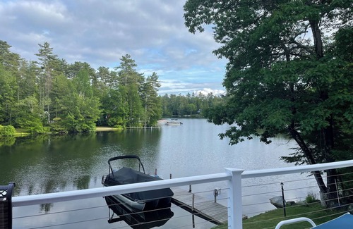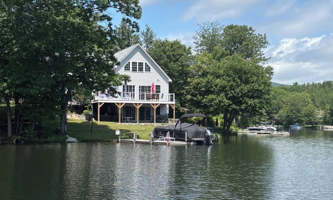 Relax with the whole family at this beautiful lakefront retreat! This idyllic home is in Moultonborough and sits right on Lake Winnipesaukee : a private lawn w/ 5 bedrooms, a hot tub, TWO kitchens, and private dock...perfect for parking your boat and launching the kayak and paddleboards! Serve grilled family dinners on the spacious deck with lake views.
