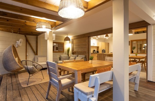 The Villa Ocean features 3 bedrooms, with ensuite bathrooms: 2 king beds + 2 twins (which can be pushed together to become 1 king) + 2 bunk beds. Memory foam mattresses. Pool and deck to relax, BBQ and garden.