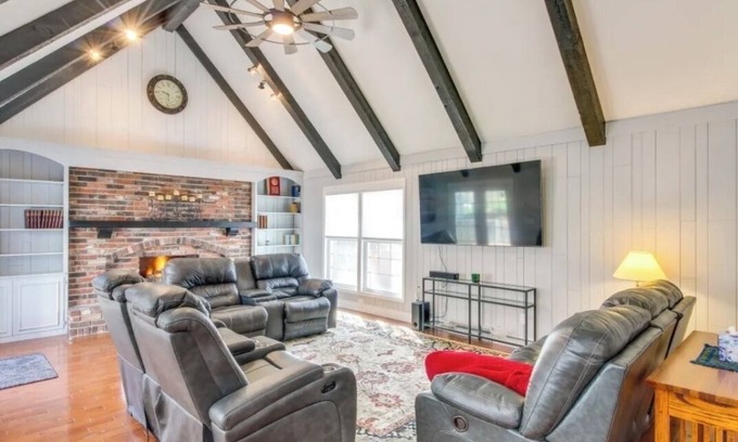 Treat your family to a memorable Kansas retreat and make this 4-bedroom, 3-bath Lenexa vacation rental your next home away from home! This property features an A-frame living area with a Smart TV, a fully equipped kitchen, large dining room and access to the area’s most popular attractions. Get outside and enjoy a morning exploring the Overland Park Farmers’ Market! Traveling with kids? Visit the animals at the Kansas City Zoo. Or just relax with the whole family at this peaceful place to stay.