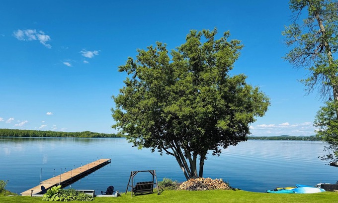- Cozy lakefront home with expansive views 25 minutes from Burlington