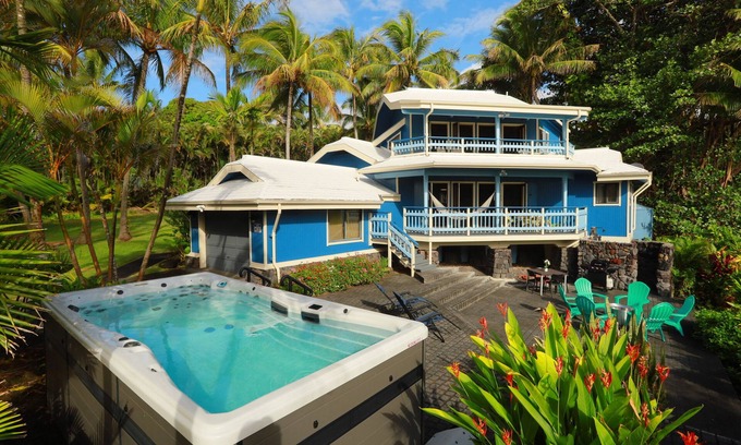 Kehena black sand beach house - ocean view - swim spa is located in Kehena Beach Estates. Kehena black sand beach house - ocean view - swim spa provides accommodation, featuring Pet Friendly, Security/Safety, Bedding/Linens, among other amenities. This House features Pet Friendly, Security/Safety, Bedding/Linens, to make your stay a comfortable one.