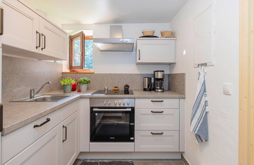 The charming and comfortable house welcomes you in a secluded location surrounded by a small vineyard, a large flower meadow and a bright deciduous forest at the top of the Stremer Berg. Enjoy a wonderful view of the landscape from the Kellerstöckel, which has been preserved in its original structure and equipped to modern standards. After your adventures, make yourself comfortable in the inviting living room or move your meals outside, a gazebo invites you to spend cozy hours. Surrounded by the beautiful deciduous forest, you can enjoy a relaxing vacation in a quiet location.