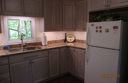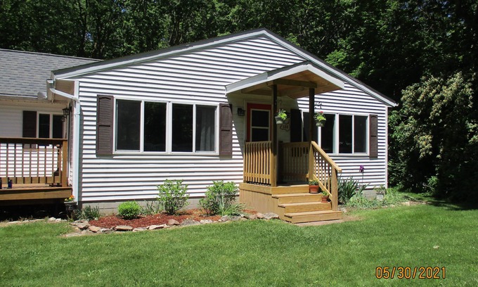 This 2-bedroom house has two full bathrooms; both with walk-in showers. The master bedroom has a queen-size bed. The second bedroom has two twin beds. There is a futon that sleeps two. The house was newly remodeled in 2015. The kitchen was remodeled in 2021. The large deck faces Lake Erie. There are lots of amenities including a gas grill, a 48" TV, newer electric stove, outdoor fire ring, and plenty of parking. The house has A/C and electric baseboard heating. We provide complete kitchen inventory (plates, silverware, pots, etc.), limited bedding (blankets, pillows, and pillow and mattress protectors), and paper products (Please note: bath towels and sheets are NOT provided. There will be an additional $150 charge if you do not bring sheets.)