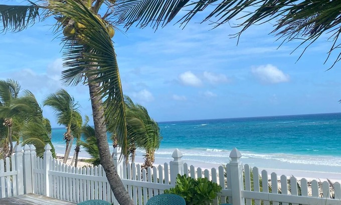 The property has two beach view bedrooms and one garden view room. The view of the beach is stunning but equally so is the view of our garden where our mother's green thumb shines through. Each bedroom has its own bathroom and there is a sleeper sofa in the living room for children or extra guests. Our house has its own private beach stairs and path for easy access to the beach. Be soothed to sleep by the sound of waves breaking on the shore. Beautiful deck overlooking the beach for your morning breakfast or afternoon cocktail. Sleeps 8 people. Perfect for families and couples looking for an adventure, romantic getaway or peaceful, relaxing time. Housekeeper included. Beautiful garden maintained by a gardener. Beautiful patio furniture for dining and chill-axing. We truly love our home, Kelly Krest, we are 3rd generation owners and our love for our home is reflected in the warm feeling you will get when staying and relaxing there. VRBO and Home Away accept an alternative payment method for our property which is validated by both companies . The payment is done through wire transfer to our Bahamian bank account as credit card payments can only be taken for American bank accounts .