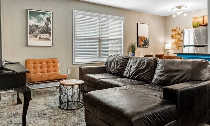 This first floor 2-bedroom apartment is walking distance to Kyle Field, the A&M Campus, and is just a few blocks away from Northgate restaurants and bars. Each bedroom has a comfy King bed and the living room boasts a leather sectional, a genuine Barcelona chair, and a 50-inch TV. With included WiFi, you are ready to stream from your favorite entertainment apps. Located just off Wellborn, right on the border between Bryan and College Station. Close to EVERYTHING in Bryan/College Station!