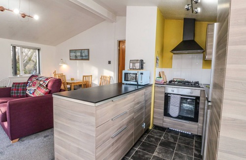 Amenities: Gas central heating. Electric oven, gas hob, microwave, fridge/freezer, washing machine, tumble dryer. TV, WiFi. Fuel and power inc. in rent. Bed linen and towels inc. in rent. Highchair available on request. Off-road parking for 1 car. Front garden with decking, gravelled area and furniture. Two well-behaved pets welcome. Sorry, no smoking. Shop 2.9 miles, pub 0.4 miles. Note: The decking may become slippery when wet, please take care. Note: The lodge is located next to the owner's property and the owners can organise boat trips for guests