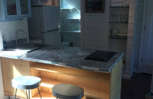 Please look at the photos and be clear that this is a true “tiny house” experience and will meet your expectations. We are very excited offer a full queen sized mattress on a Murphy Bed that folds down over the sofa after the cushions are stored! No more achy sofa bed! It does not have a dishwasher or washing machine. Often guests choose our low price when they want a hotel or larger house experience, then seem disappointed, which we truly do not want to have happen!