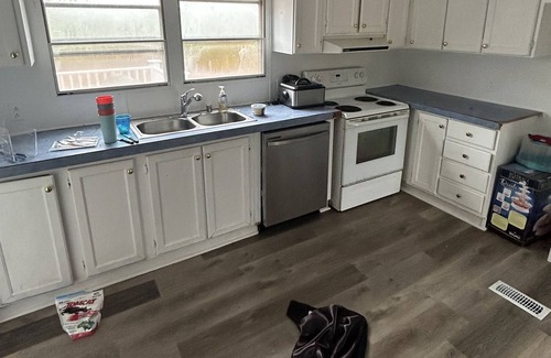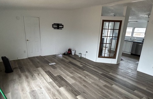 House in the country with three bedrooms, two bathrooms, a deck, heating and air, unfurnished, and remodeled in the last year. Peaceful getaway with everything you need for a place to stay, better option than a hotel!