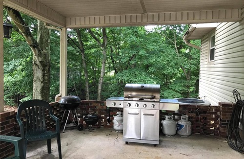 Bedrooms sleep up to 10 with 3 queen beds, 1 double beds and 4 twin beds. Two full baths with combination shower and tub. Towels and linens provided. Gas grill and indoor fireplace.