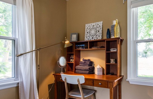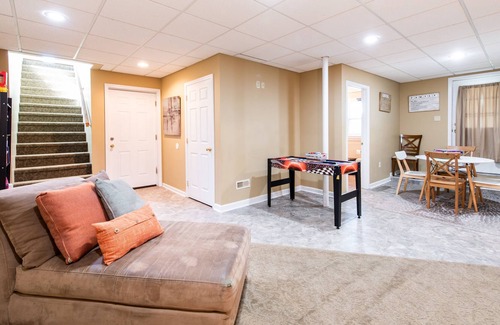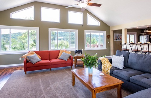 Have a family picnic on the lawn or lounge on the two oversized decks. Fish on our private dock! Roast marshmallows at the fire pit and then watch the sunset and falling stars on the upper deck. Warsaw is a quaint little town and very walkable. You will fall in love with this home in this quaint little river town.