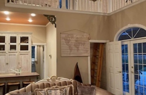 A welcoming guest house to provide visitors with the warm comfort of their own home, complete with everything a guest needs. 1 queen bed & 2 twin beds in the loft area, Additional sleeping arrangements up to 2 air mattresses available upon request with linens. Outside you will find an expansive outdoor area with gorgeous landscaping, designer wrought iron fencing for security and privacy.