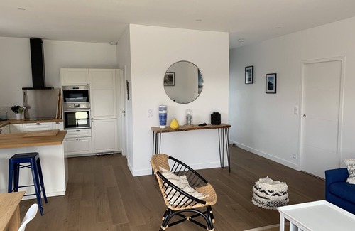 House of full foot, ideally located between the port and the beach. Bright house, nice, quiet. Equipped kitchen. Large terrace. Three vehicles can park. A bathroom (1 bath), separate toilet, 3 bedrooms, two double beds, two single beds. Tv / internet, Sheets and towels provided. Beach towels, beach games, board game available. Large sandy beach, typical port with restaurants, creperies, bar. Near Bakery, grocery, fishmonger.