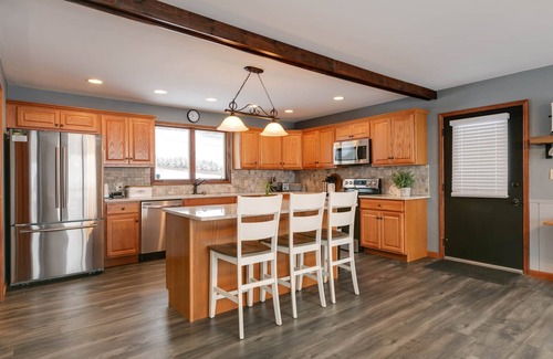 We provide a starter home kit with a limited supply of essentials like toilet paper, paper towels, hand soap, dishwashing detergent, laundry detergent, and trash bags but please bring any additional supplies you may need for your entire stay. Linen and towels are included. Enjoy coffee with your choice of a coffee pot or Keurig. Stay connected with WiFi and take advantage of parking for your ATV or Snowmobile.