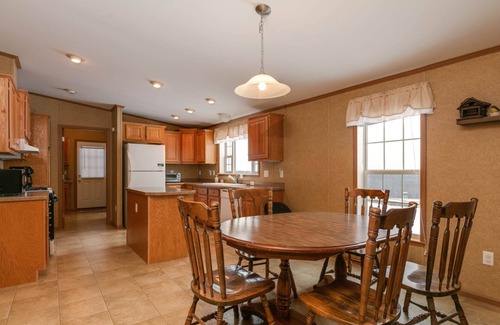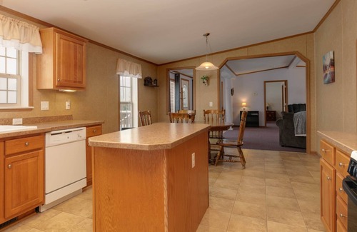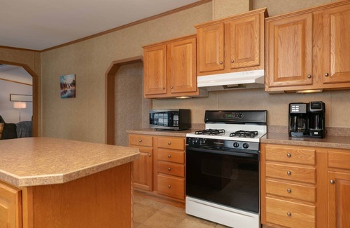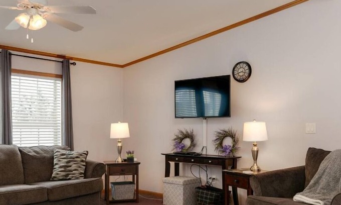 Our Ranch Style home features a cozy living room with a Smart TV and a spacious, well-equipped kitchen with Keurig, Coffee Pot, Waffle Maker, and more. The Primary Bedroom boasts a Queen Bed and a bathroom with a large walk-in shower. The second bedroom offers a queen bed, while the third has two twin beds. You’ll find a convenient workspace and a shared bathroom with a shower/tub combo on this side of the home as well. Central Air provides comfort throughout the home.