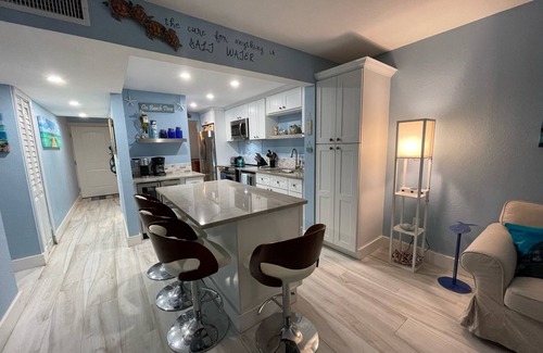 Welcome to your tropical haven at Moon Bay, a gated community on Blackwater Sound in Key Largo! Our condo offers breathtaking bay water views and is fully renovated with a touch of undersea vibes. Enjoy the spectacle of stunning sunsets from the patio, whether you choose to bask in the natural breeze or opt for air-conditioned comfort with the double sliding glass doors creating a seamless indoor/outdoor living experience.