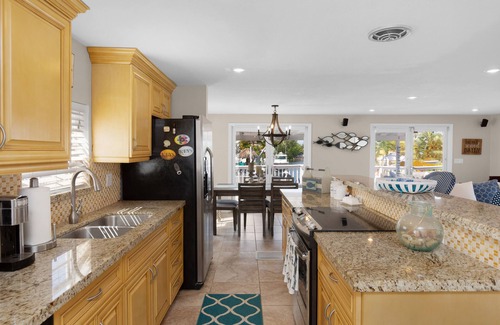 Grill dinner or your catch while watching the family enjoy the wide canal with frequent manatee visits. Then enjoy the sunset from your deck while relaxing on the sectional sofa or while having dinner on the outdoor dining table.