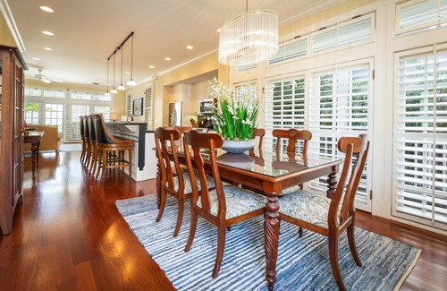 Upon entry you will be greeted with elegant mahogany wood floors, and a beautiful formal dining area with seating for 8.