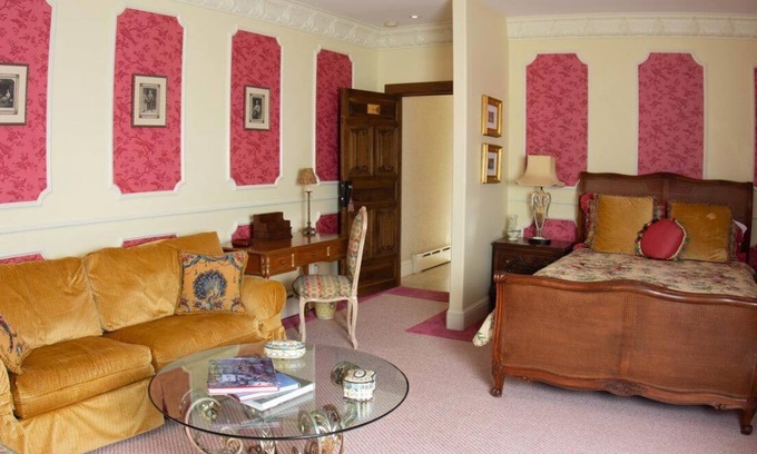 Indulge in the timeless charm of our 650 sq. ft. mid-19th-century French luxury suite, perfect for the romantic at heart. Unwind in a queen-size bed and a full ensuite bathroom with a whirlpool tub/shower combo. Delight in the modern conveniences of a wet bar and walk-in closet, then savor moments of tranquility on the private balcony, soaking in stunning vistas of the San Juan Mountains during your exclusive estate rental.