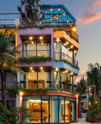Khue Le Bleu Villa - Hải Tiến is located on the beachfront in Thanh Hóa. Among the facilities at this property are a shared lounge and a 24-hour front desk, along with free WiFi throughout the property. The hotel features family rooms. The private bathroom is equipped with a bidet, free toiletries and a hairdryer. All guest rooms at the hotel feature air conditioning and a closet. Tho Xuan Airport is 38 miles away.