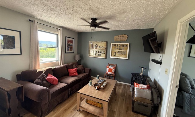 Welcome to your mountain escape in Canaan Valley! This bright and comfortable 2-bedroom, 1-bath apartment is perched above the Blackwater River and surrounded by the peaceful beauty of the Canaan Valley National Wildlife Refuge. Enjoy morning coffee on the porch, unwind by the fire table in the evening, and take in the serene mountain views. With a full kitchen, Wi-Fi, and streaming-ready TV, it’s the perfect blend of nature and comfort—ideal for couples, families, or a quiet getaway.