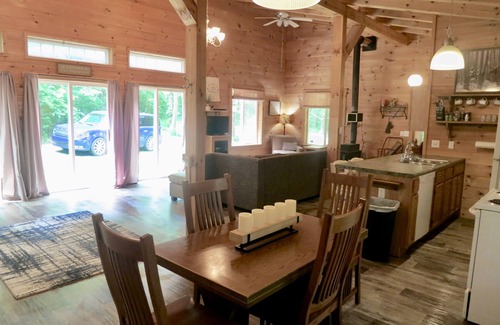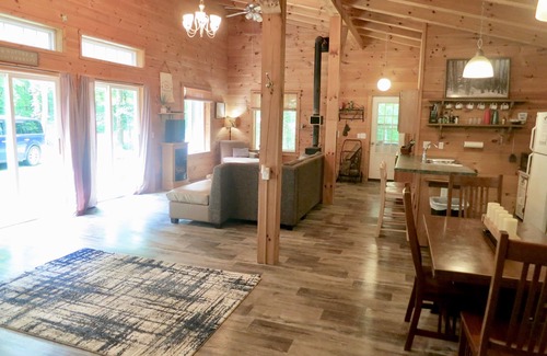 Tucked back in the woods, at the edge of 23 acres of a roughly 150 yr. old farm, this spacious, Amish built cabin built in 2006, is the ideal place to kick back and relax with friends or just your better half. Kick Back Cabin was originally the previous owner's art studio. With walking trails on the property that lead to a small creek and a seasonal pond, the scenery is sure to inspire.