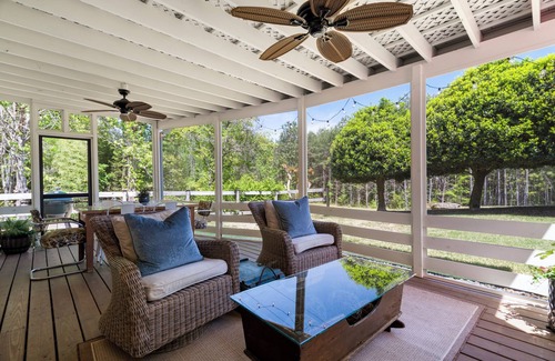 Enjoy our screen porch for morning coffee, meals or watching a #AtlantaBraves game! Listen to the birds and the distant whistle of our town train, while you swing in the hammock (available depending on the weather).