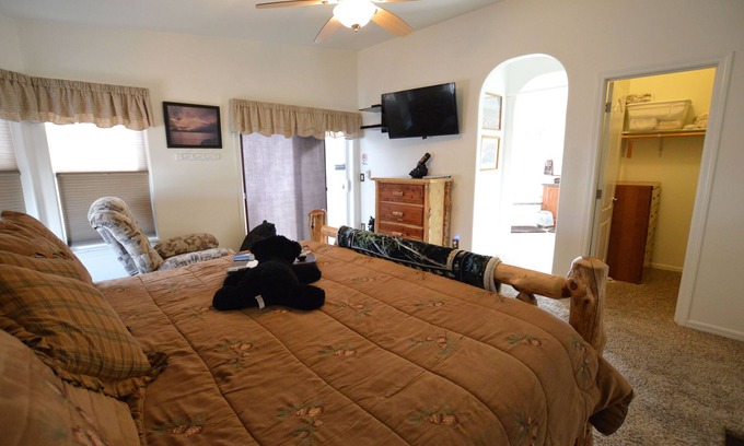 This is one of our private rooms in our Bed & Breakfast located at The Bear's Den B&B close to Antelope Canyon, Horseshoe Bend and Lake Powell. You have your own parking area, private entrance and we provide a made to order breakfast for you each morning. We have a total of 3 rooms in our B&B and each listed separately on VRBO. We have free Wi-Fi, DirecTV in your room and a 7 person Hot Tub in the back area for all to use.