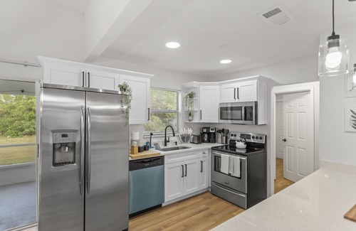 Located just south of Orlando, the Kissimmee area offers easy access to breathtaking attractions, including the iconic Walt Disney World Resort, making your wedding accommodation not only memorable but also conveniently located for exploring local wonders. You’ll find lovely nearby parks like Kissimmee Waterfront Park, which features walking trails, fishing piers, and beautiful scenery—perfect for post-wedding relaxation or photography. Make your special day unforgettable at the King bd /Modern Home sleeps 8 w/private backyard.