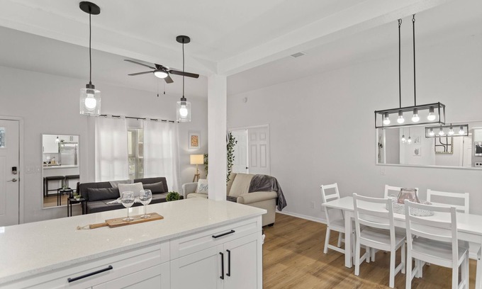 Theme Parks: Kissimmee is renowned for its proximity to world-famous theme parks, making it an ideal location for a wedding stay at King bd /Modern Home sleeps 8 w/private backyard. Spend your days exploring the magic of Walt Disney World and Universal Studios, creating unforgettable memories with your loved ones.