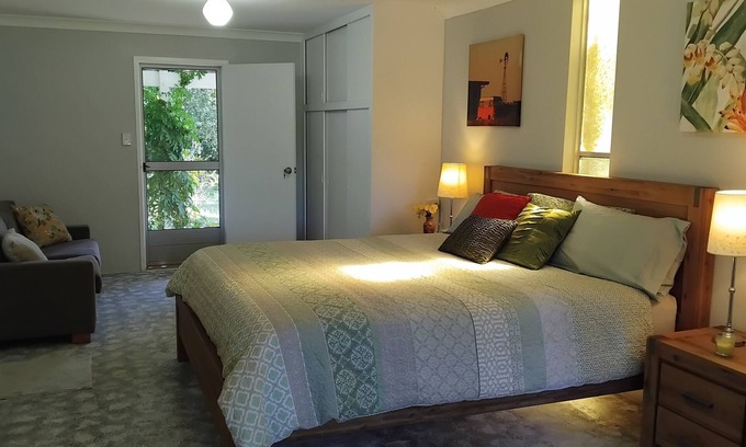 Own entrance door to spacious private bedroom with Luxury King Bed awaits you in a peaceful country home in Valery on Mid North Coast only 8 mins from Pacific Highway .