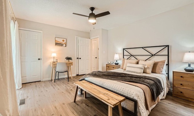 King Bed & Fire-pit in Central Charlotte has 2 Bedrooms , 1 Bathroom, and max occupancy of 5 people. The minimum rental for this property is 1 nights, but this can change depending on the season you plan on staying. Previous guests have rated it 2, and VRBO labeled it a top-rated Apartment because of the excellent services rendered by the owner or manager of this Apartment, and has consistently provided great experiences for their guests. Most families or guests that use it recommend it to their friends and some of them are repeat guests. Apartment has a friendly neighborhood, and the Oak Forest has interesting places to visit. If you want to learn more about the Apartment in Oak Forest, such as places to visit and things to do nearby, you can check below to learn more.
